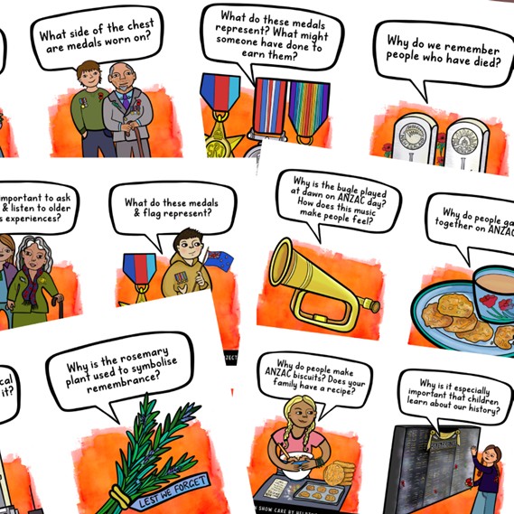 Create a meaningful and engaging ANZAC Day learning space in your classroom with this thoughtfully designed wall display and conversation card pack.